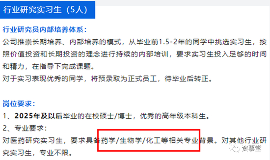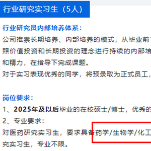 按照这家百亿私募的要求,宁泉资产招聘的“医药研究实习生”需要具备药学/生物学/化工等相关专业背景。
