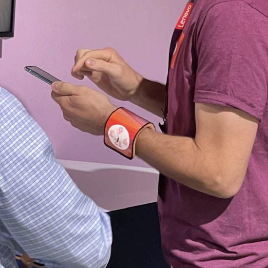 据透露,这种新概念设备使用了FHD+极化显示器,可以根据需要弯曲和塑造成不同的形式,并可以从水平位置的标准安卓手机体验,调整为手腕佩戴体验或定位在几种支架模式下。
