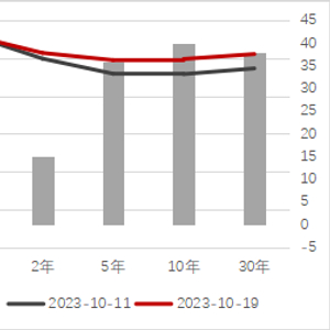 长债发行放量叠加美联储缩表,导致当前市场对于美债供需失衡的风险十分敏感,这也解释了10年期及以上美债利率较2年期更快攀升的现象。目前国会通过了45天的临时拨款法案,但11月中旬,两党将再次对新财年的拨款法案进行投票审议,美国政府治理恶化、高额赤字和债务问题或再度发酵。短期内市场对美国或将面临“赤字—举债—高额利息—赤字恶化“的恶性循环的担忧加剧,这可能增加市场对长期国债的溢价要求。