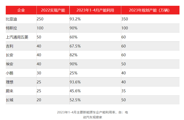 比亚迪之所以敢在整体市场需求萎缩的大环境下,使用“死道友不死贫道”战略,主要是因为自身技术、产品竞争力足够出色。在其疯狂扩产的过程中,其产能利用率基本都能维持在超过90%的高水平。有“涨”自然也有“消”,根据相关数据统计,五菱、吉利等传统车企的产能利用率不过60-70%,新势力中的蔚来和小鹏产能利用率均不足50%。