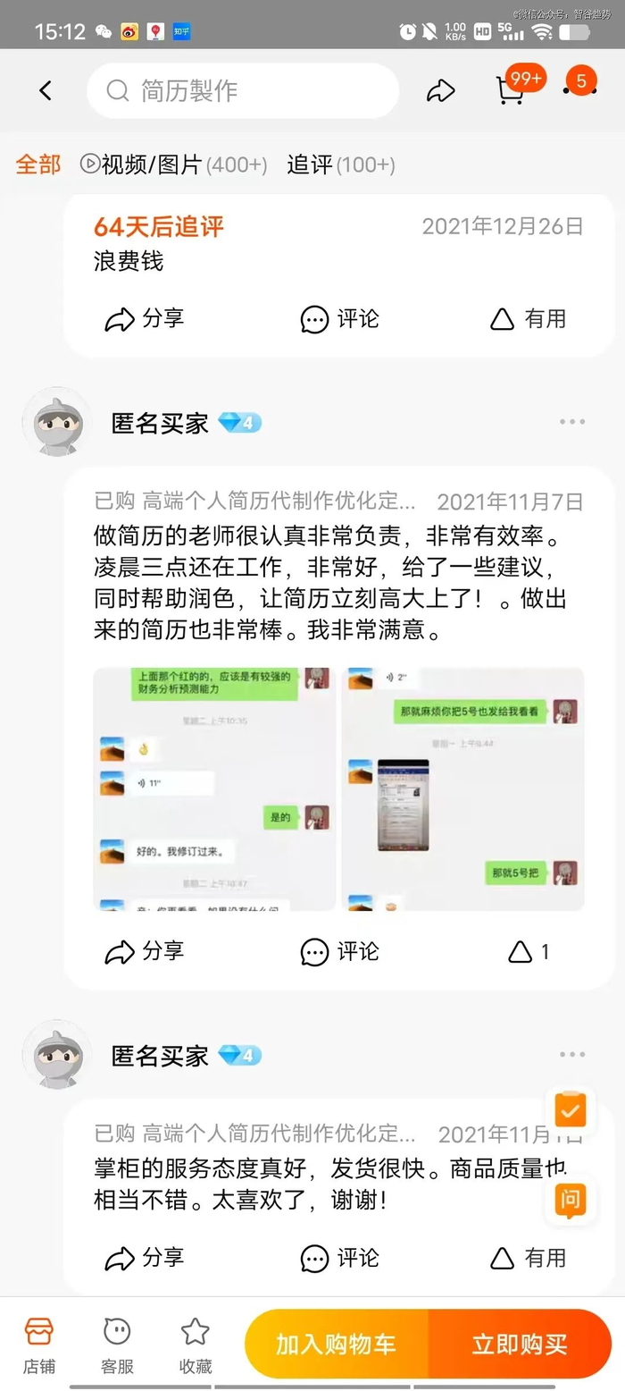 二是制作时间。多数店铺的出稿时间是两至三天,但加急的话,有的店铺最快40-60分钟就能搞定。在评论区,还能发现对接的老师甚至凌晨三点还在工作。妥妥的刷业绩的味道。要真是在职高级HR,怎么可能为了一点小钱,半夜三点还在给你改简历?
