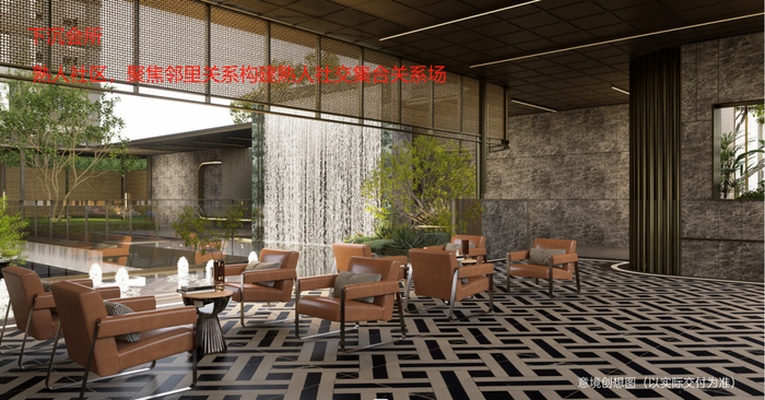 越秀认为,社区不仅是展示性的空间,更是邻里社交的关系发酵场。汲取酒店社交空间打造理念,基于邻里关系的重塑,以熟人社区的营造,实现越秀·天悦云萃事业、家庭、社交三合一的社区空间。通过下沉会所+主题泛会所,形成双会所垂直立体社交空间,同时打造亲近自然的户外社交场、社区共享的聚会厅,满足业主家庭社交同时,兼顾工作社交与朋友社交。