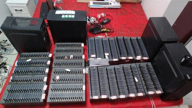 民警在现场查获了猫池设备4组、台式电脑3台、笔记本电脑1台、手机5台、电话卡千余张。