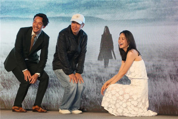侯孝贤(中)、张震、舒淇与“聂隐娘”合影。