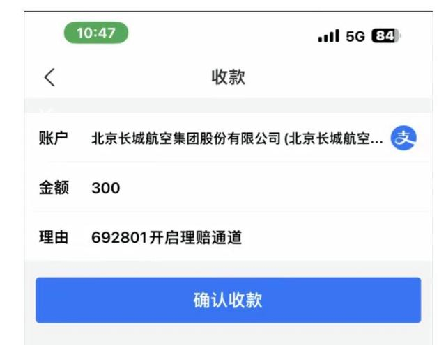 一位受访者提供的截图显示,被诱导至支付宝收付款环节时,收款账户名为“广州白云国际机场商旅服务有限公司”,而自己要乘坐的是四川航空的航班。王倩近期同样掉入这一陷阱,其提供的截图显示收款账户为“北京长城航空集团股份有限公司”,她准备搭乘的是中国国际航空公司。