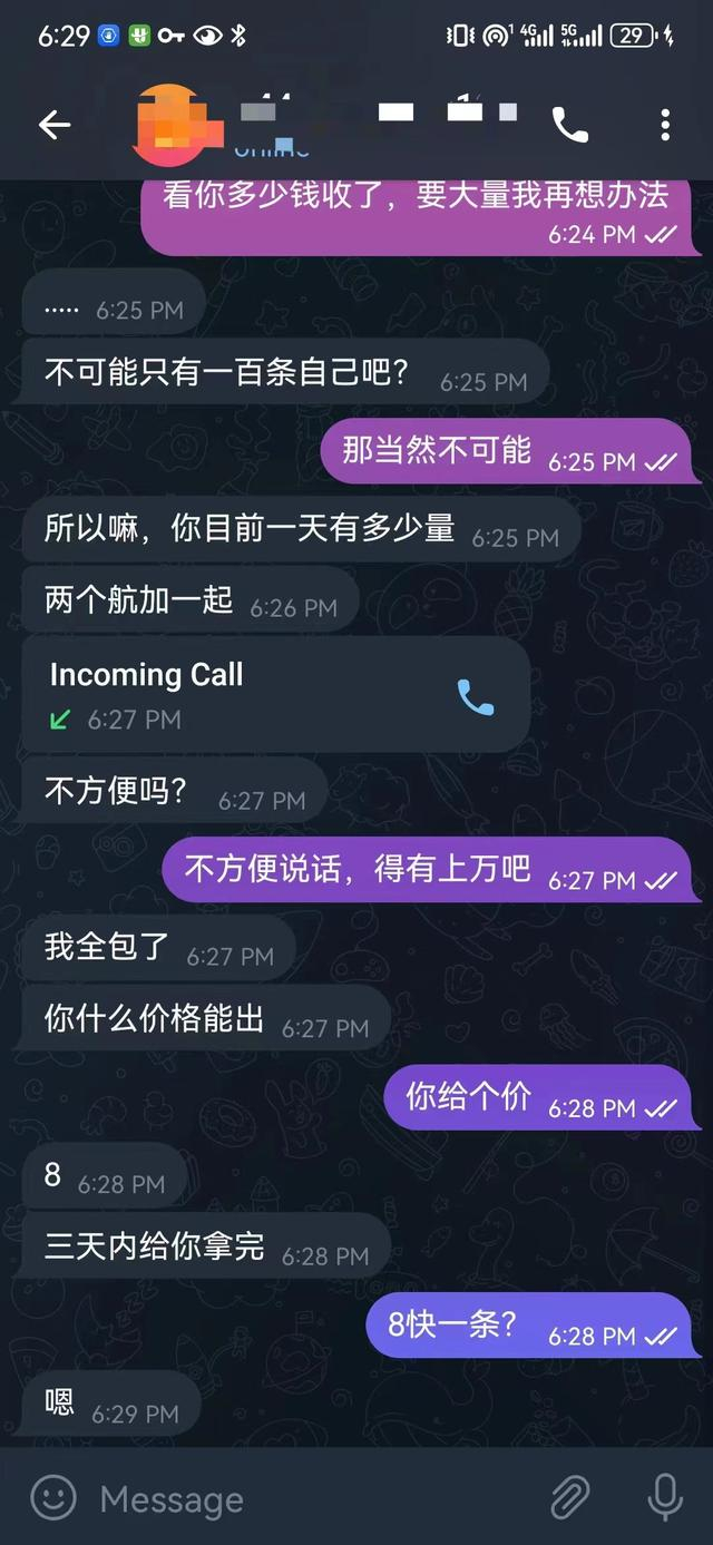 贝壳财经记者联系了一位购买者,对方在问明记者手中具体是哪一个航空公司以及多达一万条数据后,立刻大方表示,记者手中的航班信息“全都要”,而且每一条乘客信息达到8元。