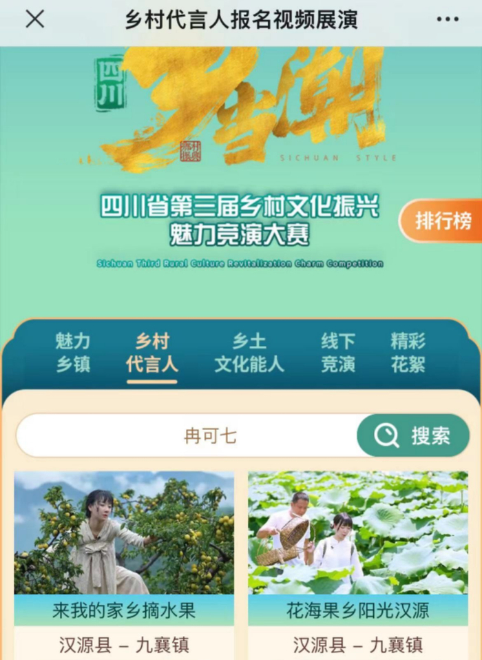 四川省第三届乡村文化振兴魅力竞演大赛报名开始后,她立刻报名乡村代言人,上传了《来我的家乡摘水果》《花海果乡阳光汉源》等视频。“以短视频方式推介各地乡土文化、展现大美四川,这次大赛与我一直在做的事非常契合。成为一名乡村代言人,是我一直努力的方向。”冉可七透露,如今除了展示美景、售卖水果,她也正在探索宣传家乡的新方式。“最近我正在跟很多自媒体达人合作,邀请他们来我的家乡,把风土人情记录下来,与粉丝们一起分享。”目前,云贵川地区的不少网络达人都与她建立了一定的合作。