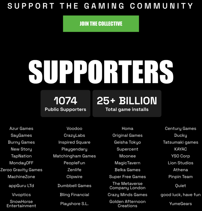 一些中小游戏厂商算账后发现,Unity新定价方案会导致公司破产,因此号召抵制Unity。游戏厂商、游戏玩家共同掀起了这场抵制浪潮。今年9月末,一个包含1074家游戏企业的联盟发布集体信,号召所有游戏企业关闭Unity广告。该联盟官网显示,这1074家游戏企业的游戏安装次数超过250亿次。