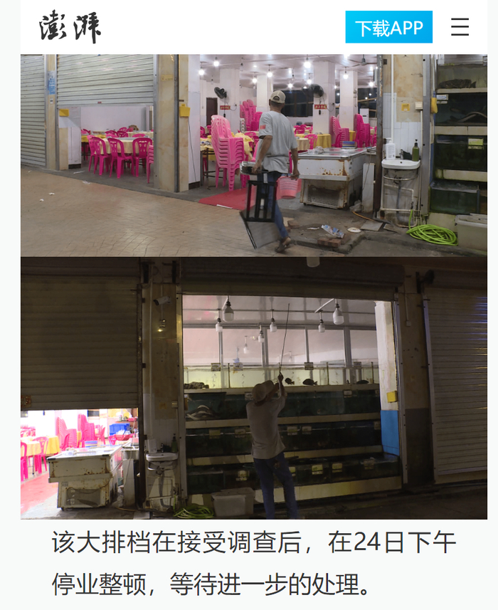 据报道,目前涉事大排档于10月24日下午被市场监管部门责令停业整顿,等待市场监管部门的进一步调查处理。