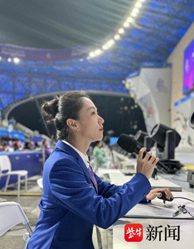 刚刚结束2023年国际攀联世界杯的执裁后,赵姗姗又马不停蹄地出现在杭州亚运会的攀岩赛场,担任攀岩项目的国内技术官员。自2015年起,赵姗姗一直在从事攀岩相关工作,致力于推进江苏省攀岩运动的发展。“本次亚运会非常荣幸能够被江苏省推荐参加到亚运会的执裁工作当中,很幸运,也很开心。”赵姗姗说。