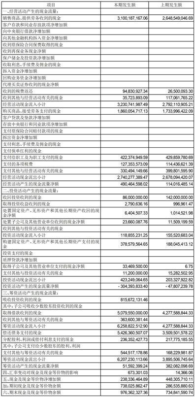 3、合并年初到报告期末现金流量表