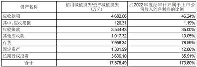 (四)公司拟对2023年9月30日合并会计报表范围内存货计提存货跌价准备人民币7,958.34万元,占公司2022年度经审计的归属于上市公司股东的净利润的78.59%。