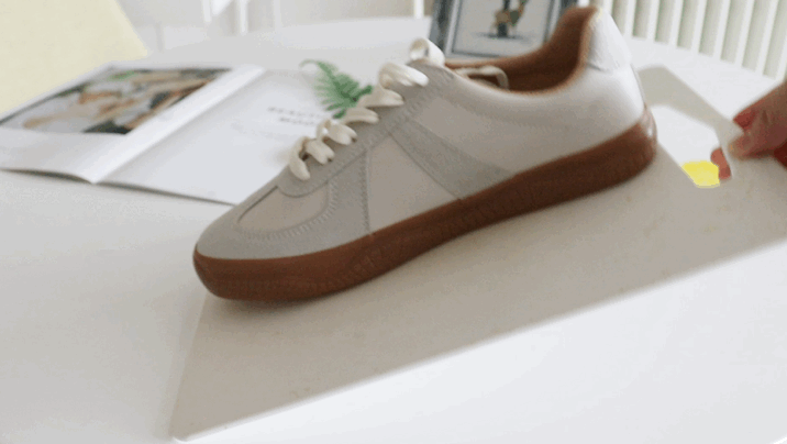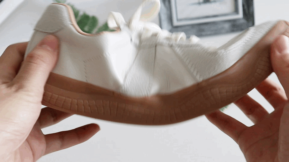 标志性的灰白鞋身+咖色鞋底中性色系,比纯白更有层次感,不显单调。配上咖色鞋底,复古感十足!