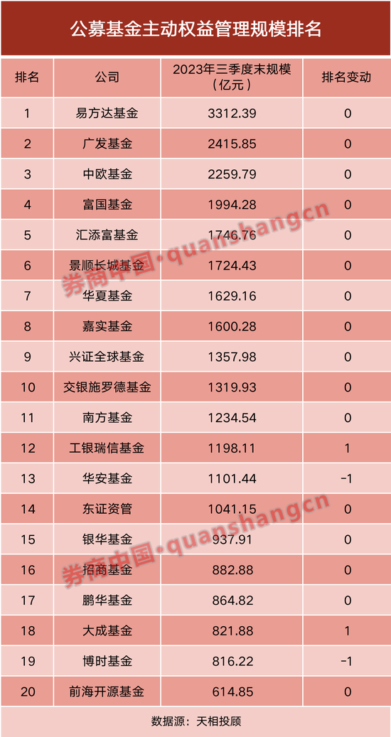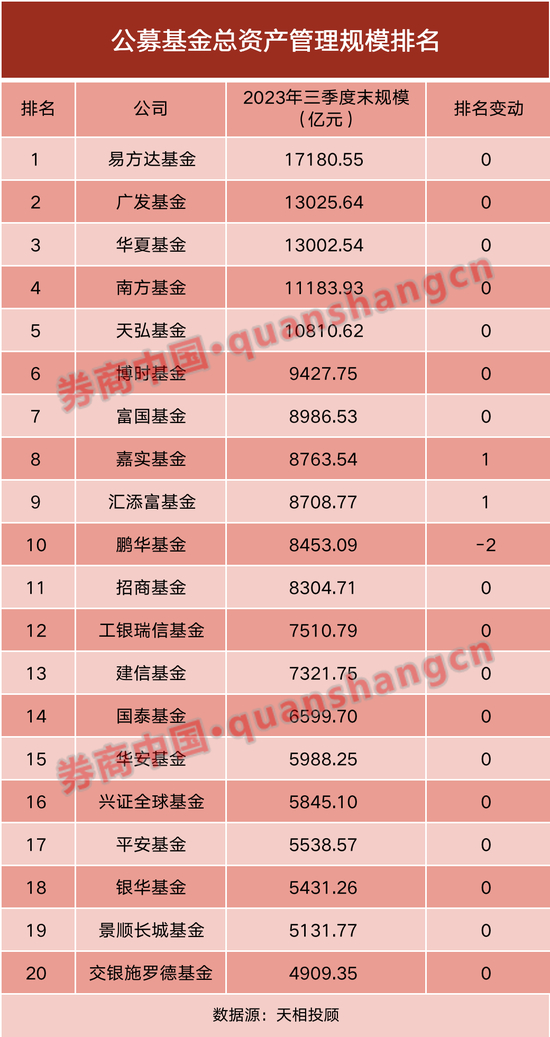 基金公司2023年三季度规模排名新鲜出炉!