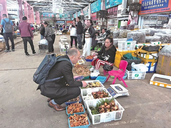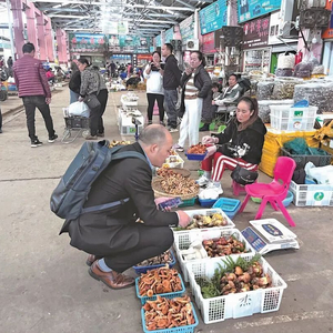 霜降后,天气转凉,野生菌数量逐渐减少。10月25日,记者走访了云南木水花野生菌交易中心(以下简称木水花市场),鸡枞价格上涨至120—260元/公斤,见手青降价至200—350元/公斤。此外,干巴菌价格为300—1300元/公斤、谷熟菌50—150元/公斤,黑松露200—800元/公斤。