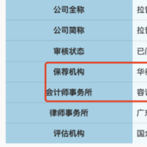 拉普拉斯保荐机构为华泰联合证券有限责任公司(以下简称“华泰联合证券”)保荐代表人张新星,罗剑群。会计师事务所为容诚会计师事务所(特殊普通合伙),签字会计师陈勇,廖蕊,周心喆。