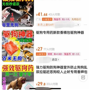 据销售上述产品的店铺客服介绍,“驱狗香精包”提取于狗狗讨厌的刺激性气味植物,在一定范围内达到驱赶动物效果,以保证自身安全。原理方面,“驱狗香精包”模拟了狗狗讨厌的气味,让它们闻到而远离。