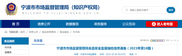 浙江省宁波市市场监管局发布食品安全监督抽检信息(2023年第18期)