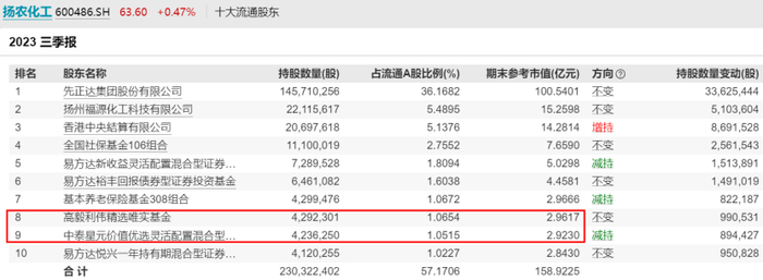 三季度,他还增持了扬农化工99.05万股,持股市值近3亿元,天地科技、天玛智控前十大流通股东名单则已不见该产品身影。