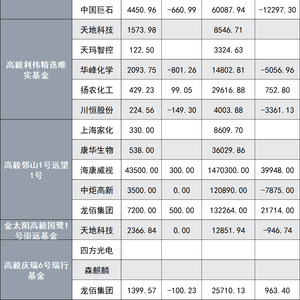 此外,邱国鹭管理的金太阳高毅国鹭1号崇远基金三季度持有天地科技2366.84万股,与上季度保持不变;孙庆瑞执掌的高毅庆瑞6号瑞行基金三季度减持龙佰集团100.23万股,四方光电、森麒麟前十大流通股东名单已经不见该产品身影;卓利伟管理的高毅利伟精选唯实基金三季度分别减持华峰化学、川恒股份801.26万股、149.30万股,他还增持扬农化工99.05万股,持股市值近3亿元。