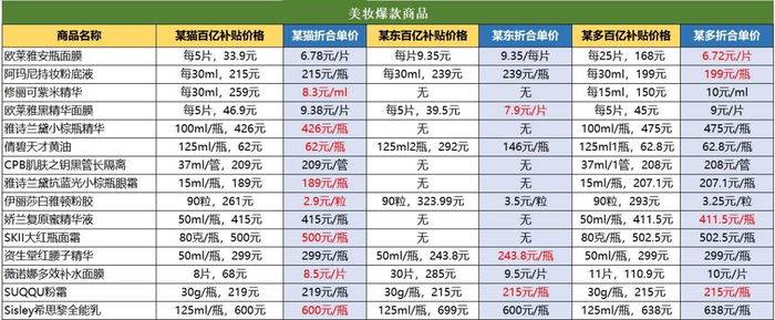 除了吃喝,每年双11必备的“美妆护肤”今年也拿出了最“能打”的价格,今年的美妆护肤在价格上有多卷,还得看各家的百亿补贴力度。记者精选了几款当下热门的美妆产品,通过对比发现,天猫上修丽可紫米精华、雅诗兰黛小棕瓶、倩碧天才黄油、SK-II大红瓶面霜等多个热门单品,折后单价全网最低,其中修丽可紫米精华面膜单片仅需9.38元,雅诗兰黛抗蓝光小棕瓶仅需189元/瓶,几乎半价就可拿下;而阿玛尼持妆粉底液、娇兰复原蜜精华液等拼多多相对便宜,几乎是日常的六七折价格。欧莱雅黑精华面膜、资生堂红腰子精华则在京东有价格优势。