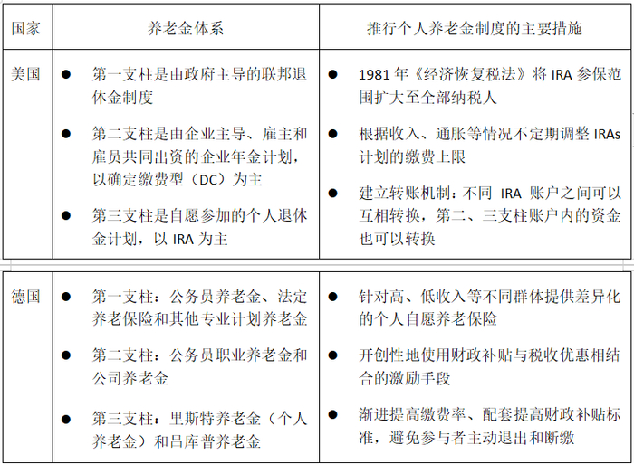 美国和德国推行个人养老金制度的主要措施