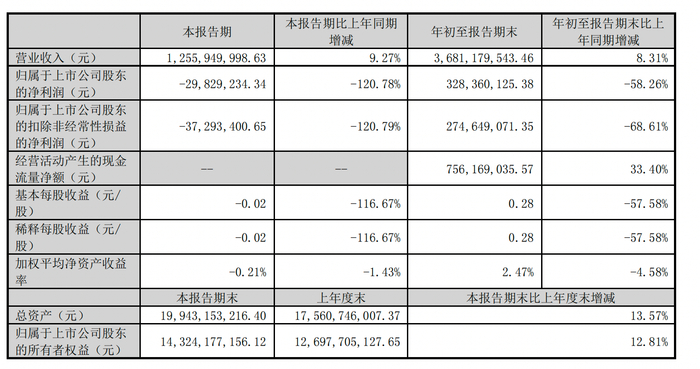 10月26日晚间,昆仑万维科技股份有限公司(昆仑万维,300418.SZ)发布三季报,第三季度营收12.56亿元,同比增长9.27%,净亏损2982.92万元;前三季度净利润3.28亿元,同比下降58.26%。
