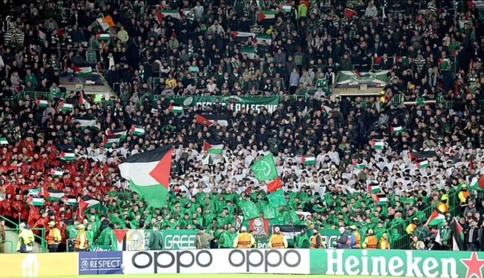 无视禁令,欧冠赛场被巴勒斯坦国旗"淹没"了