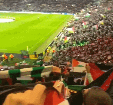 然而周三当晚,凯尔特人公园的看台上仍变成了一片巴勒斯坦国旗的“海洋”。