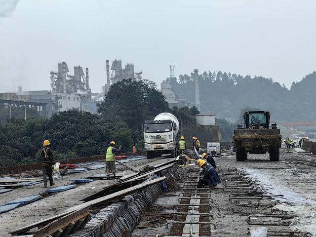 离开连界收费站进入钒钛大道一期,行驶1公里多的路程,来到了正在施工的钒钛大道二期标尾,工人正在进行钒钛大桥的桥梁防护栏和隔离带施工。“因为以后主要是运送危险化学品和原材料的大型货车罐车经过,所以防撞强度要比一般的桥梁要求更高。”威远经开区规划建设局工作人员段儒兵在一旁说道。