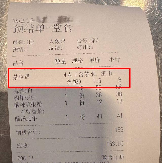 结账时发现要付70元茶位费