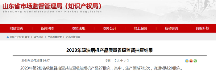 中国质量新闻网讯 近日,山东省市场监督管理局发布2023年吸油烟机产品质量省级监督抽查结果。