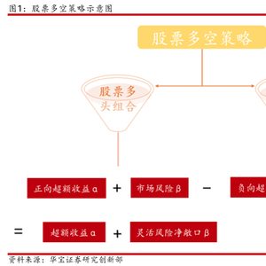 股票多空策略是海外对冲基金常见的投资模式,即同时持有股票多头和股票空头的仓位,以期从多空两端获得收益。量化类的股票多空策略沿用了多因子选股框架,在多头端买入一篮子具有正alpha的股票,同时在空头端利用融券的方式卖出一篮子具有负alpha的股票,并且通过风险约束,控制市值、规模等风险,以获得稳定收益。