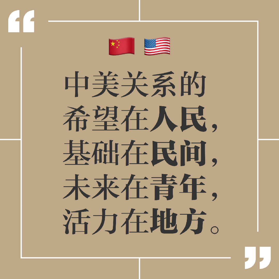 中美关系的希望在人民,基础在民间,未来在青年,活力在地方。