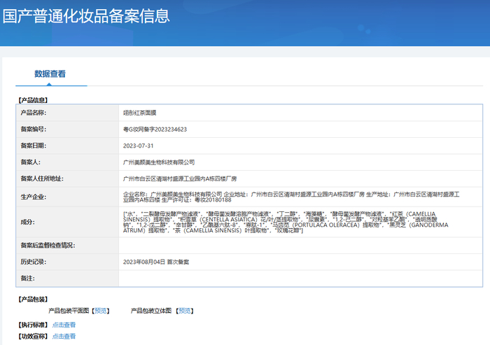 而部分网友指出的不同配方表,是国务院客户端小程序中“化妆品查询”栏目里的产品备案信息。通过上述渠道查询的“翊彤DD霜”备案,其备案编号、备案日期、生产企业、生产许可证等信息均一致,但配方成分确有出入。
