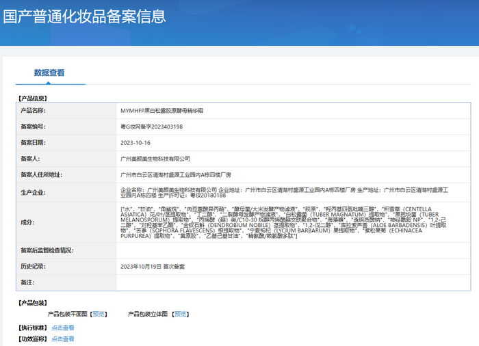 MYMHFP黑白松露胶原酵母精华霜备案信息