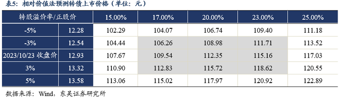 2)参考近期上市的荣23转债(上市首日转换价值96.51元)、福立转债(上市首日转换价值91.35元)、科数转债(上市首日转换价值92.21元),三只转债上市首日转股溢价率分别为35.96%、36.99%、35.55%。