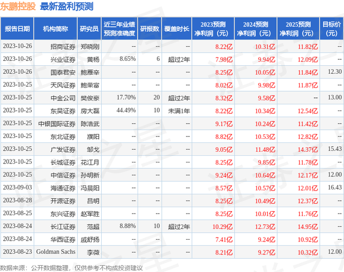 以下是详细的盈利预测信息: