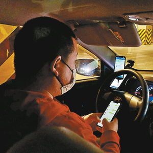 一位出租车司机在车内用九台手机抢单