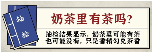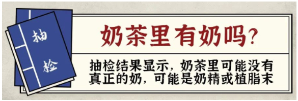 抽检的200批次奶茶中,仅有59批次蛋白质含量符合标准,8批次奶茶中蛋白质含量约0.1g/100g。也就是奶茶里可能没有真正的奶,可能是奶精或植脂末。