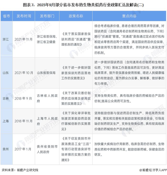 自2017年起,部分省市纷纷出台了支持生物类似药行业发展的政策,旨在提高国内生物类似药行业发展水平,满足患者需求,促进医药创新。