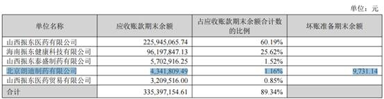 朗迪对振东制药欠款剧增