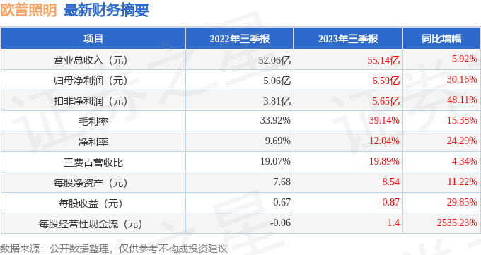 欧普照明(603515)2023年三季报简析:营收净利润同比双双增长,盈利能力上升