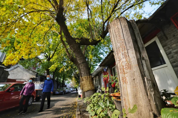 秋风渐起,目之所及,金黄的树叶开始扑簌簌落下,将胡同的道路染成了金色。秋日的暖阳从树叶的缝隙中洒下来,胡同里的老人们趁着好天气,边晒太阳边唠家常,孩子们则蹲在树旁,仔细捡拾着合适的树叶根,想要跟小伙伴们在“拔根儿”这项独属于北方孩子的传统游戏里一较高下。三不五时,耳边响起老街坊互相问好的京腔京韵,让人不禁感叹,纵使生活千变万化,身边的美好始终如一。