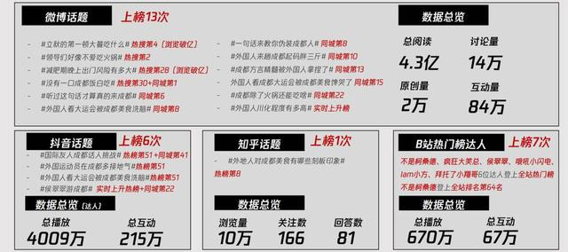 数据显示,成都大运会期间,与烤匠相关的微博热搜话题多达13次,总阅读量4.3亿,互动量18万;抖音热门话题上榜6次,总播放量超4000万,互动量215万。在年轻人聚集的社交平台,烤匠真正做到了“认知出川”。