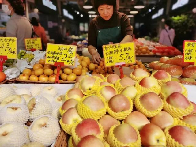 新渔菜场的苹果种类繁多,有来自洛川和烟台的红富士苹果、甘肃的冰心苹果、新疆的红玫瑰苹果,还有大凉山的富士苹果以及云南高山的野生苹果,价格在7.8元-9.8元/斤之间。据店主介绍,这个季节的苹果个个都汁多酥脆、清爽甘甜,市民可根据自己的喜好随意选择。