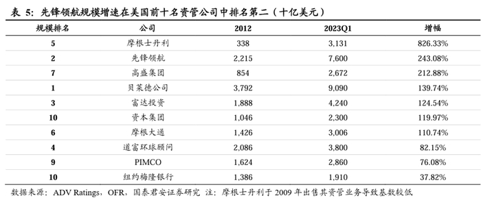 先锋领航资产管理规模增速