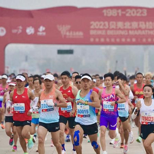 北马的竞技水平很高,在组委会的邀请名单中,包括15名世界田联金标级别精英选手参赛,其中男子跑进2小时10分以内跑者有10人,女子跑进2小时23分的有6人。赛事还配备了5名国际高水平配速员,共吸引了约200名专业运动员参赛。大众跑者同样拥有不俗的实力。据官方公布的报名成绩数据显示,有4300人的全马报名成绩在三小时以内,还有3400人全马报名成绩在3小时0分-10分成绩段,这意味着有7700名跑者具备“破三”的实力和潜力。