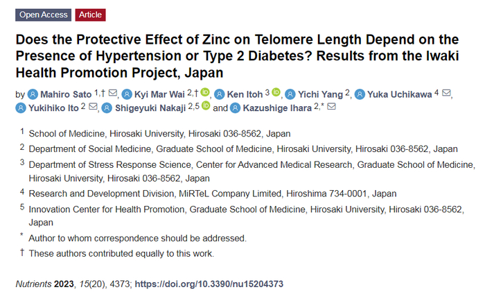 近日,日本弘前大学医学院一项发表于《营养素(Nutrients)》的研究显示,机体内较高的锌水平,或有助增加寿命。