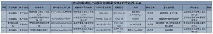 吸油烟机产品质量省级监督抽查结果
